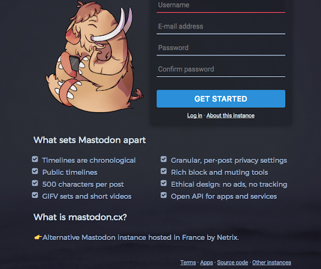 Ça marche un peu comme twitter, avec des @, des #, des timelines, etc. On garde peu ou prou le même vocabulaire à part pour quelques spécificités que je détaille ci-dessous. Mais pour s'inscrire, c'est un peu plus compliqué. Il faut commencer par choisir une instance.