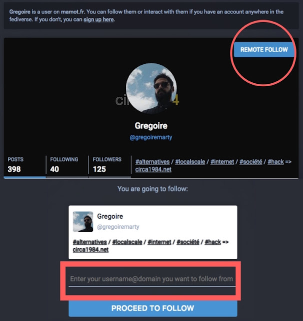 Il faut cliquer sur "remote follow", et indiquer votre pseudo complet : votrepseudo@votreinstance